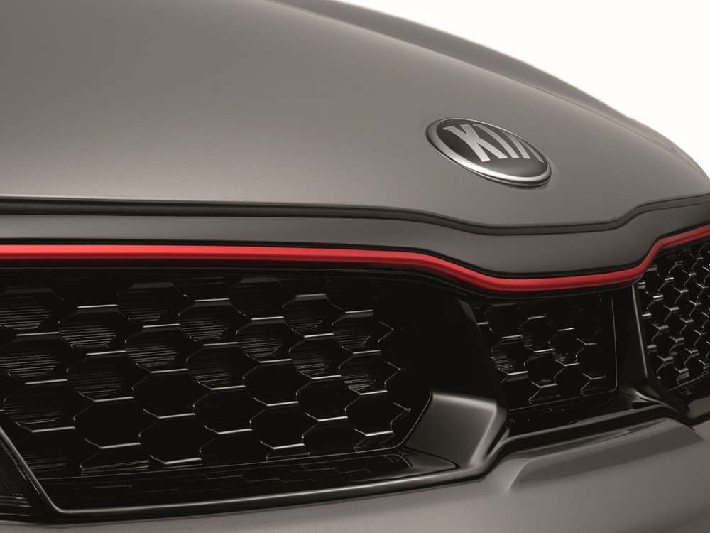 - Решётка радиатора отделкой чёрным глянцем и спортивным красным акцентом